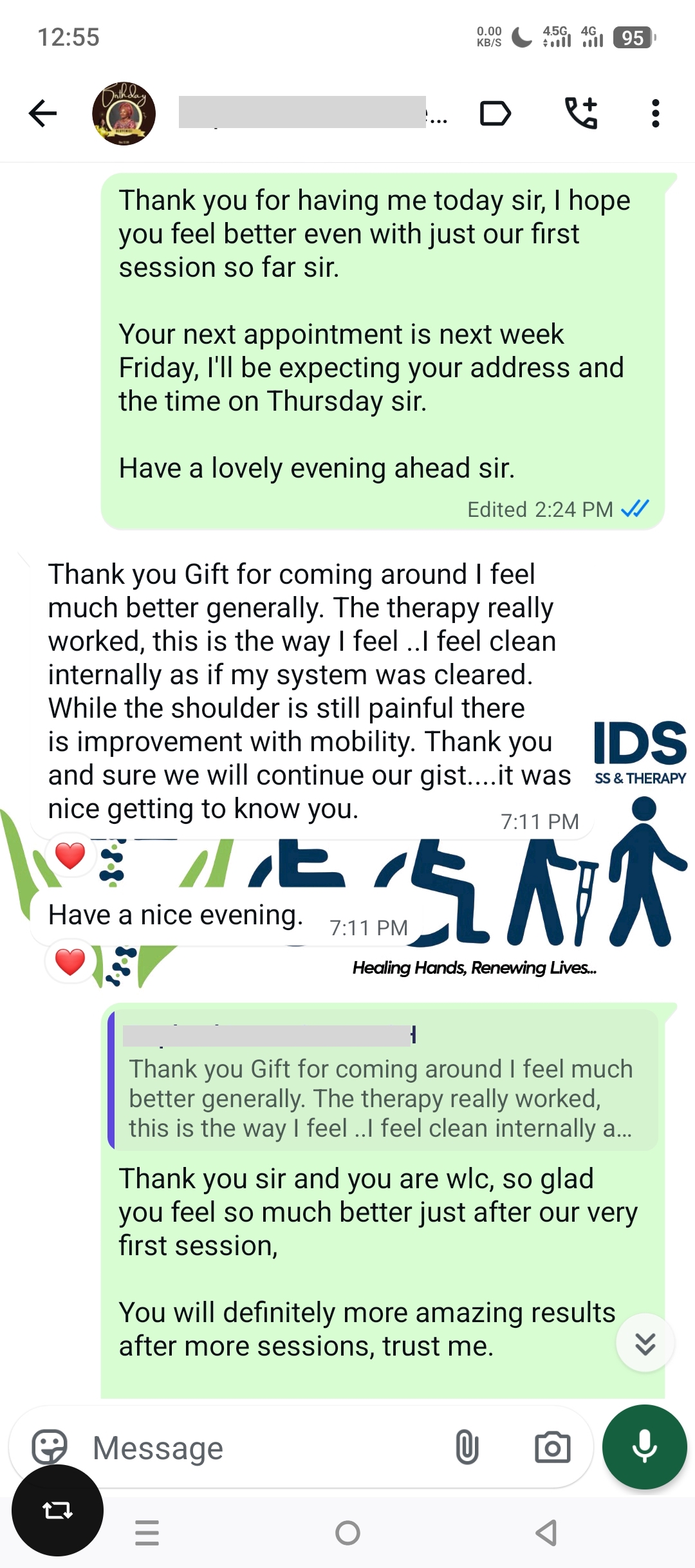 Every session was amazing! my Arthritis is gone. My husband even noticed the difference. Thank you Gifted Hands! you're the best! 🙌